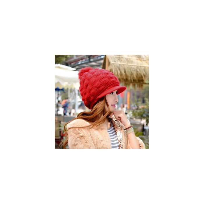 원본상품명: CrS フォックス ポンポン 付 キャスケット ♪ 【 アンゴラ 混 】 ふんわり あったか つば 付 ニット 帽 ( レッド )7-CK5-RD