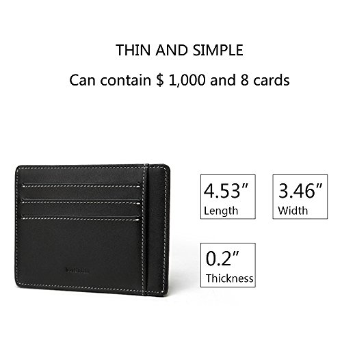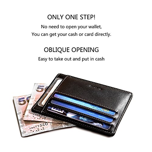 -. Feature : Only one step,No need open your wallet,get your card or cash directly / made of high quality full-grain leather,ensure the wallet is thiner,stronger,and have higher quality / Ultra slim size:(4.53" X 3.46" X 0.2"),8 card slot and 1 money pocket
