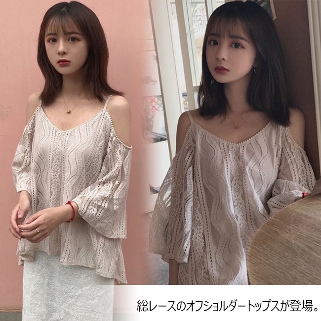 | 商品名 | 総レースブラウス オフショルダーブラウス トップス レディース 肩出し 肩だし 夏 大人 レース 袖フリル ブラウス おしゃれ |