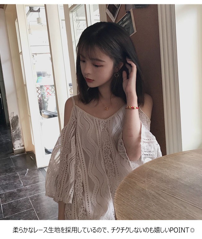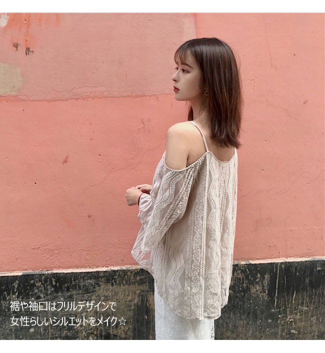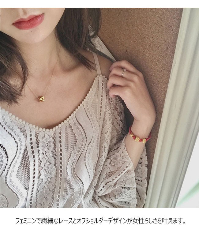 総レースのオフショルダートップスが登場。 | |
