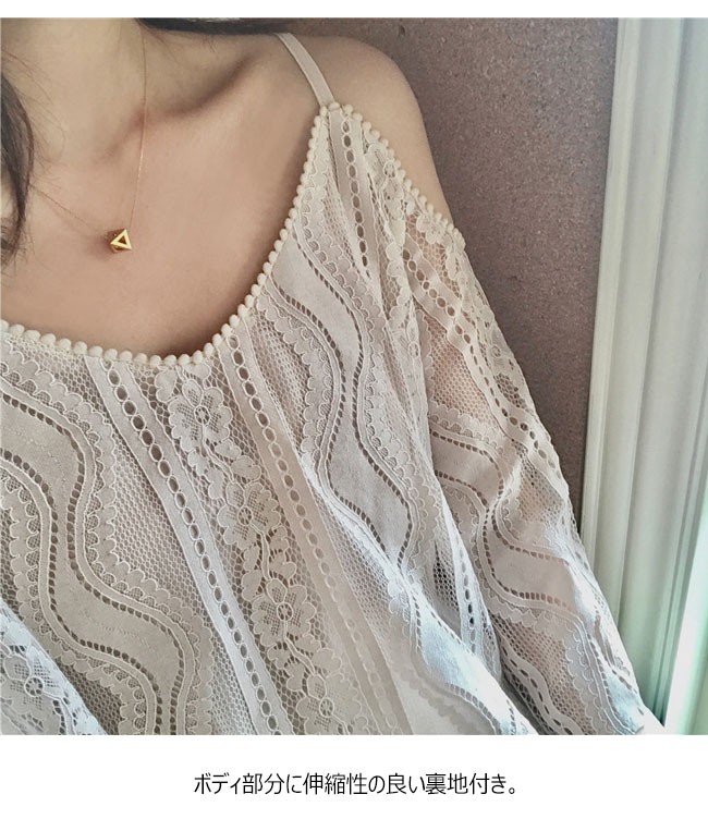 総レースのオフショルダートップスが登場。