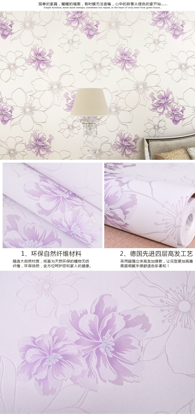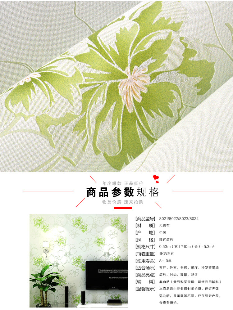 Material :Non-won Fabric wallpaper