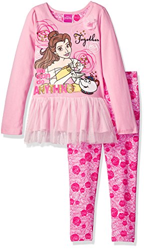 Disney Little Girls' 2 Piece Belle from Beauty and The Beast Legging Set, Pink, 5