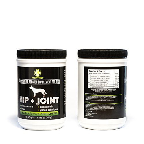 - Feature : ★ RESTORE JOINT HEALTH NATURALLY AND INCREASE YOUR DOG MOBILITY OR MONEY BACK!: Glucosamine is Involved With the Body's Production of Joint Lubricants and Helps Shock Absorption Necessary To Maintain Healthy Cartilage and Joint Function. Glucosamine Sulfate is Also One Of the Building Blocks of Articular Cartilage and Aids In the Rebuilding of Damaged Cartilage. Simply The Best Pets Supplements Your Dog Ever Tried! / ★ #1 TOP RATED FORMULA: POINTPET Natural Ingredients are Beneficial for Better Supplement Absorption. Therefore PointPet Helps You To Lower Costs For Prevention And the Treatment Of Arthritis of Your Dog. ALL AROUND PROTECTION -Independent Microbiological Laboratory Tested for TPC, Coliform, E. Coli, Yeast, Mold, Salmonella, Coagulase, Staphlococcus Aureus. Manufactured in FDA, USDA and FSIS Regulated Manufacturing Facility. Made in USA. / ★ BOOST DOG'S PERFORMANCE: Because Our Natural Duck Flavored Pet Supplement With Glucosamine Has An Anti-Inflammatory Effect, Helping To Reduce Your Dog's Pain, Restore Joint Health Naturally, Increasing Mobility, Improves Lubrication in Your Dog's Joints, May Reduce or Eliminate the Need For NSAIDS, Which Have Possible Side Effects and Don't Repair the Joints, Only Reduce Pain. You Will Notice - Trust Us, Your Dog Will Feel It. / ★ 30-DAY 100% MONEY BACK GUARANTEE - Return Even The Empty Bottles! We're So Confident That Your Dog Will Love PointPet Hip+Joint That We'll Refund Every Penny If Your Dog Does Not Like It! What Do You Have To Lose? / ★ HIGH CLASS Natural Ingredients: Glucosamine HCL (Shell_sh Source), Chondroitin Sulfate (Porcine Source), Methylsulfony lmethane (MSM), D-alpha Tocopherol (Vitamin E), Omega-3 Fatty Acids (Linolenic), Omega-6 Fatty Acids (Linoleic), Yucca Schidigera Powder (Known To Be Effective For Hip Dysplasia, Arthritis, Bone/Joint Problems and Inflammation, Reduce Pain and Increase Mobility By Production Of the Body's Own Natural Steroids. Known As a Natural Detoxifier For the Liver). Trusted and Recommended By Veterinarians.