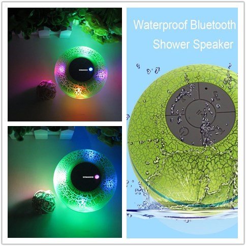 XxmanxNew Mini Water Resistant Wireless Shower Speaker, X10 HD Water Proof Bluetooth 3.0 Speaker, Handsfree Portable Speakerphone with Built-in Mic With LED Colorful Lights(Green)