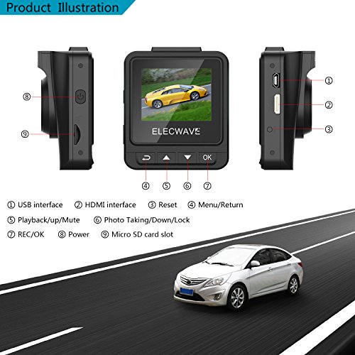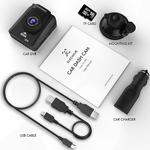 -. Title : Car Dash Cam - Elecwave EW-D200 170° Wide Angle Full HD 1296P LCD Car DVR Camera Video Recorder with G-Sensor Night Vision Motion Detection (16GB Micro SD Card Included), Black