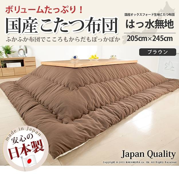 商品について:クッションやカバーにも使われる綿100%の丈夫な国産オックスフォード生地を使用した日本製のこたつ布団です。国内工場で綿入れ・縫製をしたこだわりの一品☆ボリュームたっぷり!すみまでしっかり綿が入ったふっかふかのこたつ布団です。