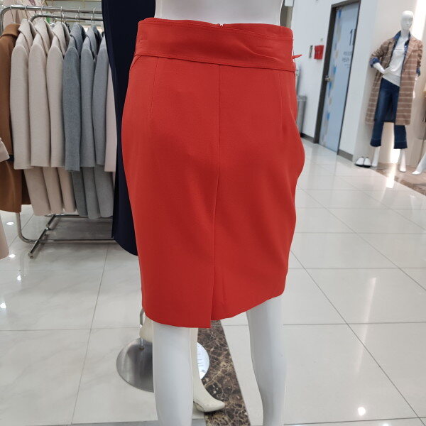 끈벨트가 포인트인 신축성좋은 기본라인의스커트입니다.실제색상은 오렌지색에가깝습니다.