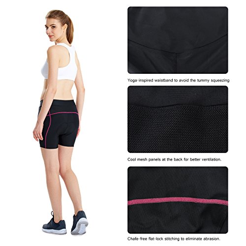 Title : Baleaf Women's 4.5" 3D Padded Cycling Shorts Comfortable Waistband UPF 50 Black Hot Pink Size S