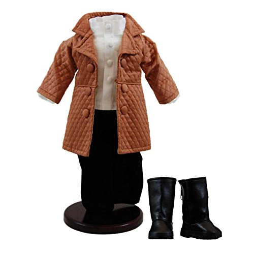 -. Feature : Rock the block in a high quality 18" doll clothing ensemble, perfect for shopping or brunch with friends in the city. / This set includes a diamond-quilted, mid-length, pleather coat with vented back over a white mandarin-collar top, black slacks, and black riding boots. / Classically styled riding boots. These tall black stylish boots are so incredibly detailed you won't believe they're for 18" Girl Doll clothes! / Boots have a rear zipper for easy dressing and are adorably packaged in a realistic shoe box! / Exclusively made by The Queen's Treasures®, offering the highest quality 18" Doll Furniture, 18" Doll Clothes, 18' Doll Shoes & 18" Doll Accessories! Safety Tested!
