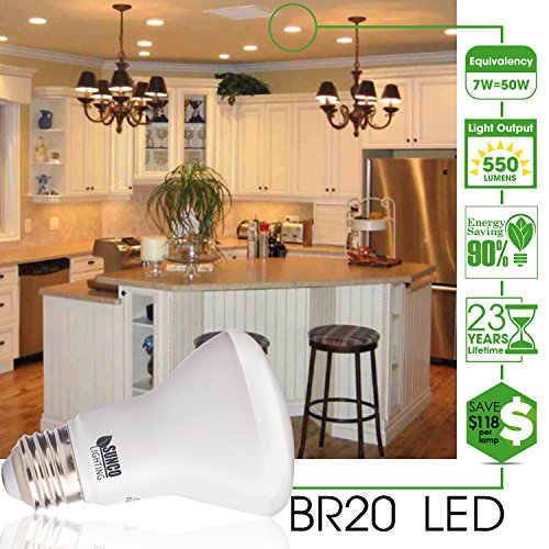 Studio : Sunco Lighting Publisher : Sunco Lighting Product Description ~Product Specifications~ - Base Type: E26 - Dimmable : Yes - Color: Soft White 2700K - Luminous Intensity: 550lm - Watts: 7W - CRI: 80 - Voltage: 120V - Incandescent Equivalent: 50W - Certifications: UL ~Description~ 1) This High Power BR20 LED, offers a market leading 550lm output and is perfect for areas where a brighter light is needed. 2) A green product that saves energy, helps our earth, and lowers electric bills. 3) The powerful light output and beam angle make it perfect for all manor of uses in the home, including lighting rooms that have slightly taller ceilings than most. 4) In comparison to other LED bulbs available, the slightly wider beam angle and 550lm output will ensure the bulbs packs enough of a punch to reach floor and work surface level, even when placed in a higher ceiling 5) This retrofit LED bulb fits straight into most existing fittings but please refer to the listed specifications should you wish to double check the LEDs fitting size. Why Buy yourself a LED Bulb 1) LEDs have great advantage of thermal resistance, larger cooling area, better lighting effect and high light efficacy. 2) High CRI (Color Rendering Index) means that the LED is emitting more of the color spectrum than typical LEDs do, Your typical bright-blue tint LED drops red, orange and aqua wavelengths, but modern high CRI emitters do a better job of outputting the entire spectrum 3) Proprietary Optics Lens enabling glare-free uniform lighting for all working environments 0