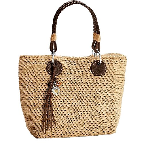 Brighton Art & Soul Solana Raffia Natural Weave Leather Tote Satchel Handbag