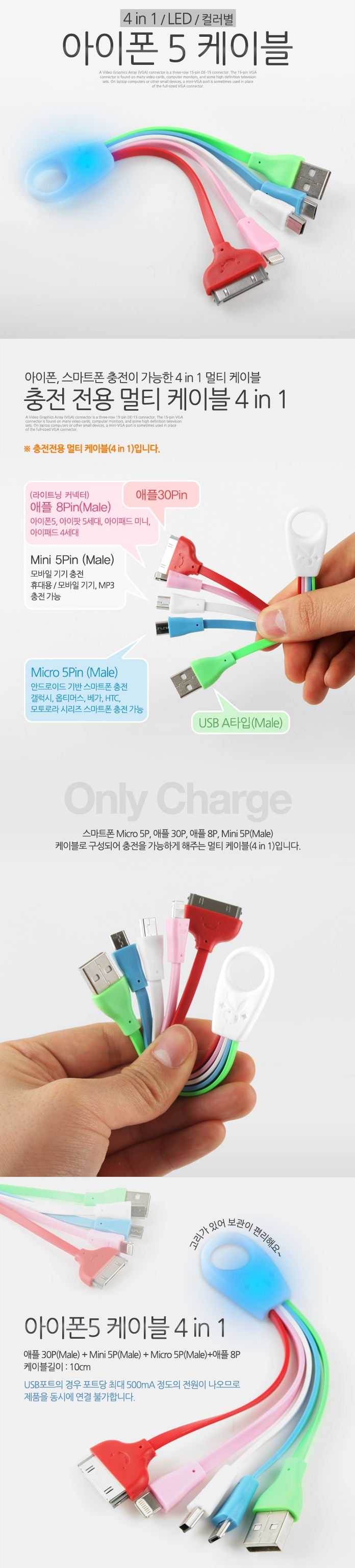 Multi Charge Only Cable Micro 5P Apple iPhone 5