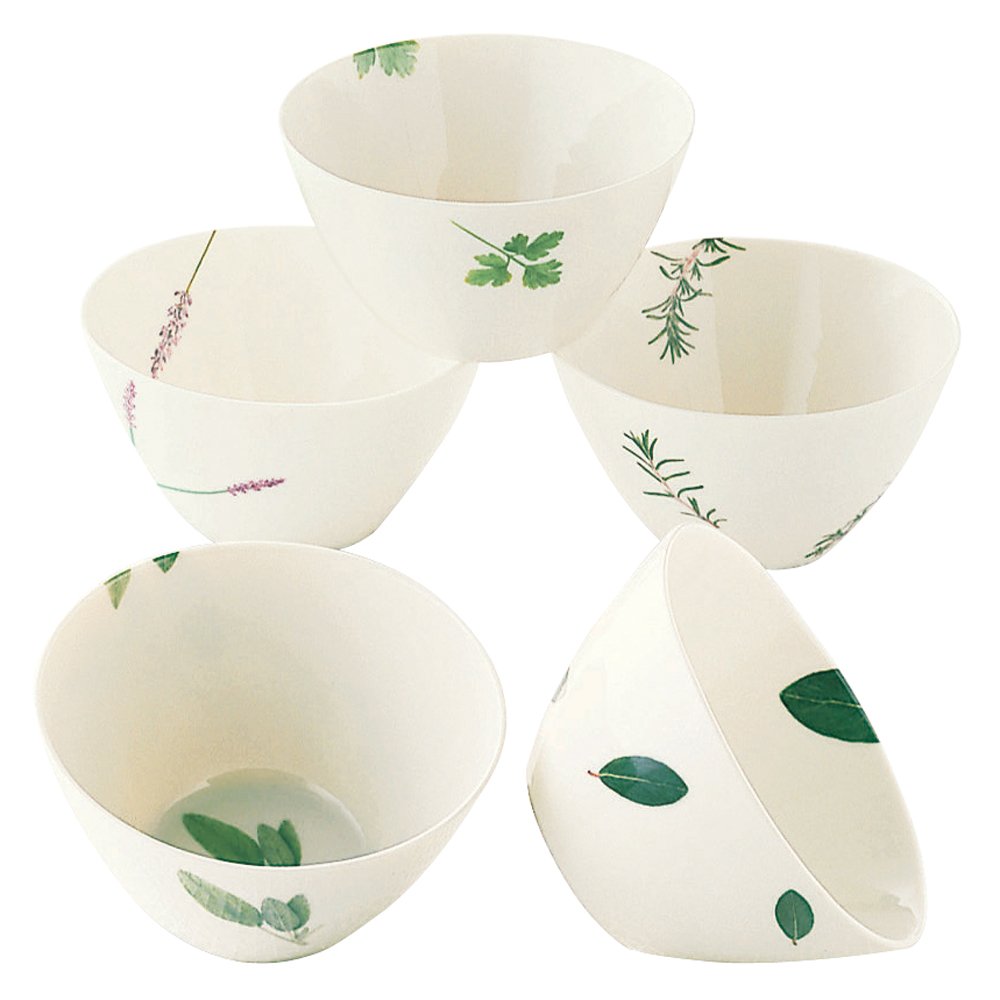Japanese Bowls - White w/ Leaf Pattern - S/5