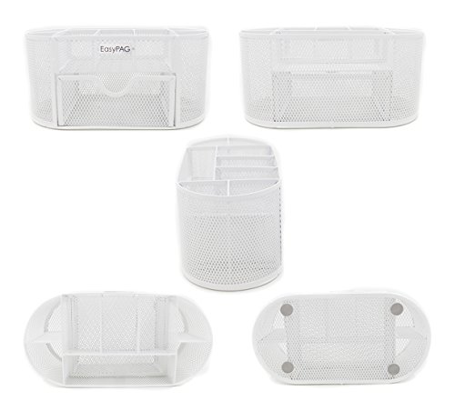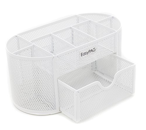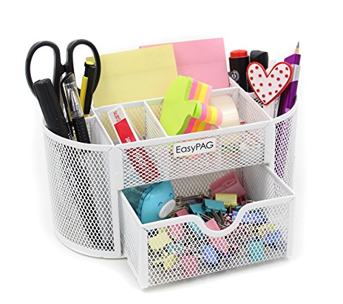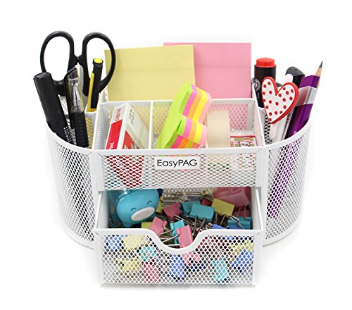 EasyPAG Mesh Desk Organizer 9 Components School / Office Desktop Supply Caddy with Drawer ,White
