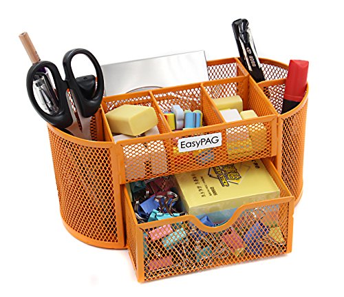 1 x EasyPAG Mesh Steel Desk Organizer 9 Components Office Supply Caddy with Drawer