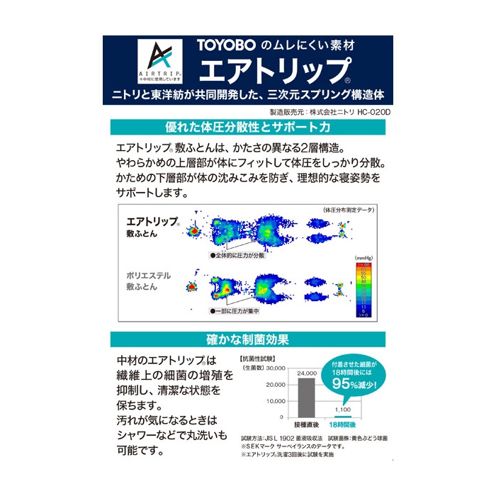 《니토리》와 동양방이 공동 개발한 삼차원 스프링 구조체,에어 트립(R)를 중재에 사용.