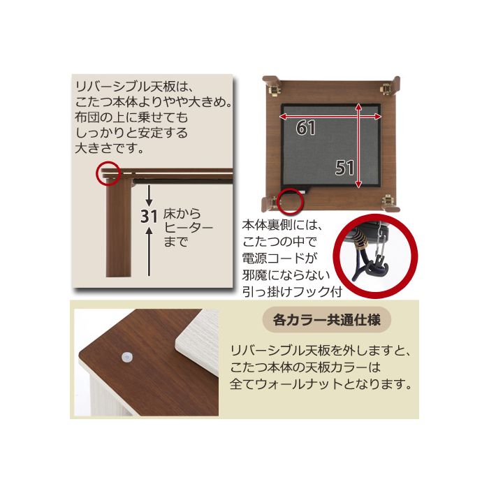 원본상품명:【 ク?ポンで2,896円引き 】 こたつ フラットヒ?タ? こたつテ?ブル 机 テ?ブル コタツ 火? 炬? 幅80cm 正方形 天板 リバ?シブル 薄型 木製 折れ脚 折りたたみ 電?こたつ ロ?テ?ブル ウォ?ルナット ホワイト 白 ? 省エネ オ?ルシ?ズン おしゃれ 完成品
