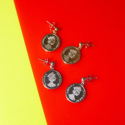 광택감이 도는 골드와 실버 컬러로 적당한 사이즈로 부담스럽지 않으며 트렌디하게 많이 보여지는 코인 디테일로 은은하게 스타일을 연출해보기 좋습니다.