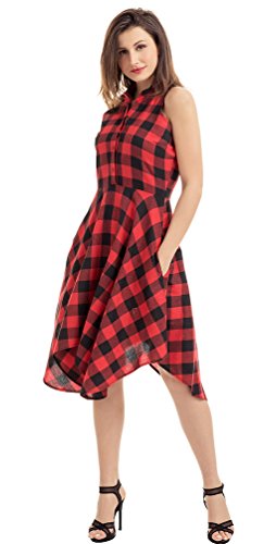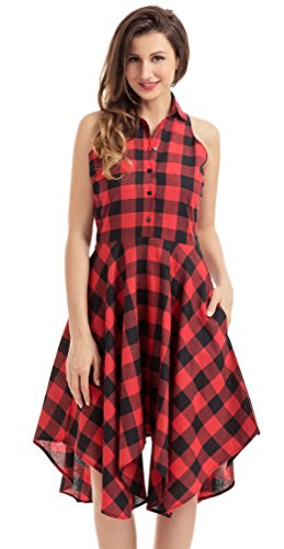 Chic and modest black white gray check patterns all over. You've got the perfect hourglass figure in this collared shirtdress with billowy pleats, button front bodice, side seam pockets and handerchief hem to complete your look. Finish your look with statement accessories and strappy wedge sandals.Feature