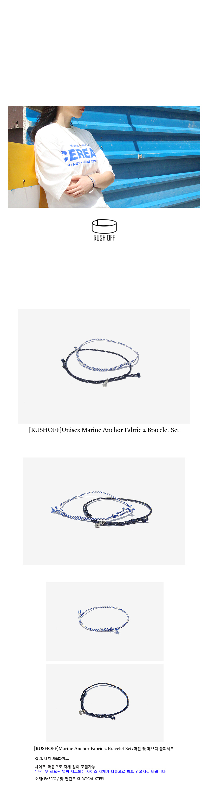 Unisex Marine Anchor Fabric 2 Bracelet / 마린 닻 페브릭 팔찌