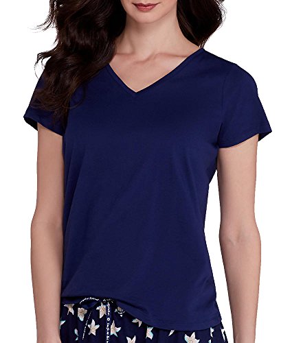 HUE Women's Solid Short Sleeve V-Neck Sleep Tee, Medieval, Small