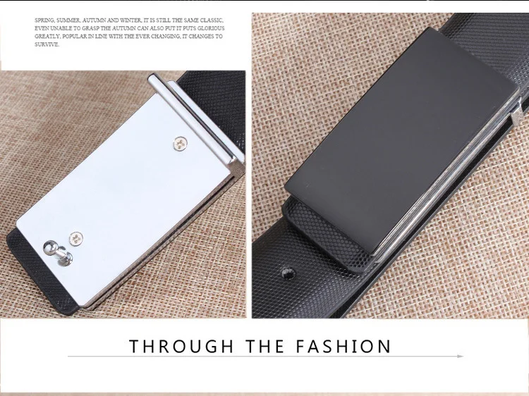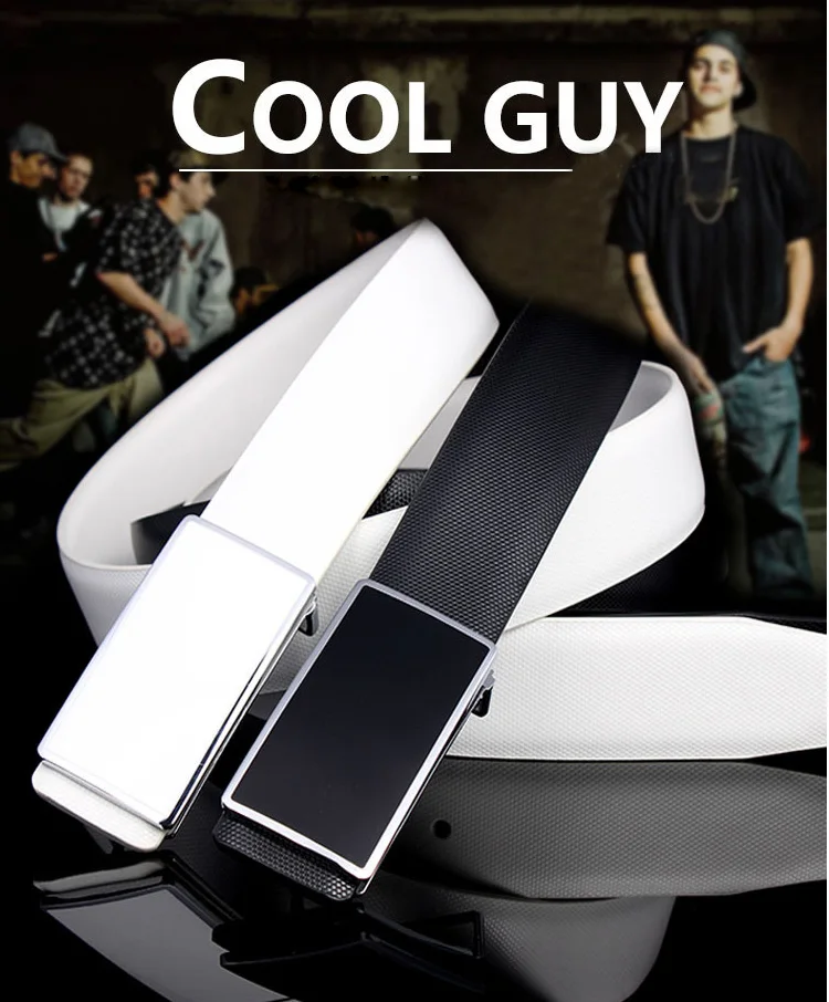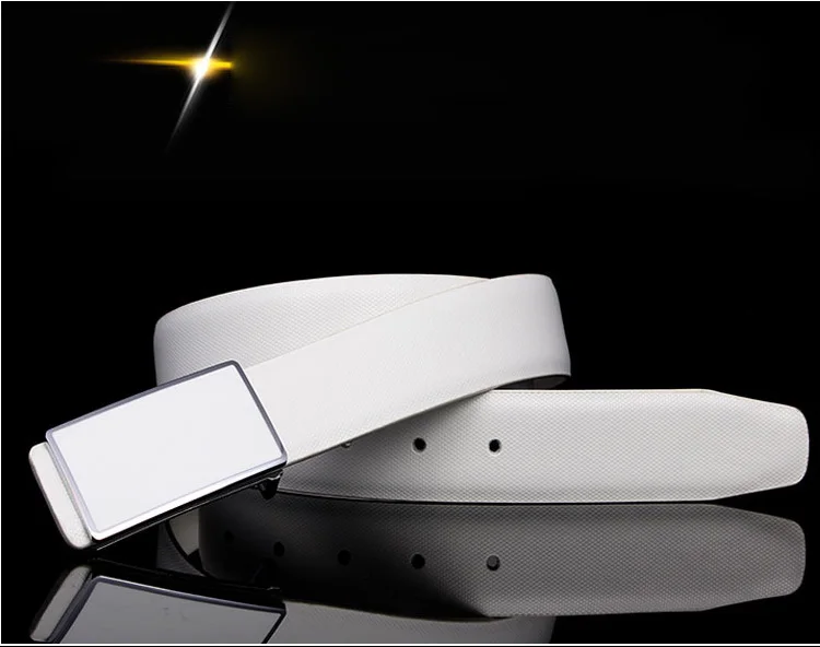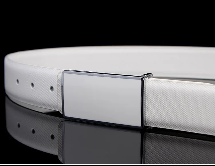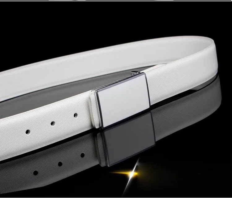 IFENDEI Split Leather Belt Male Casual Plaid Strap For Business Men Fashion Plate Buckle Belts White Black Waist For Jeans Suit