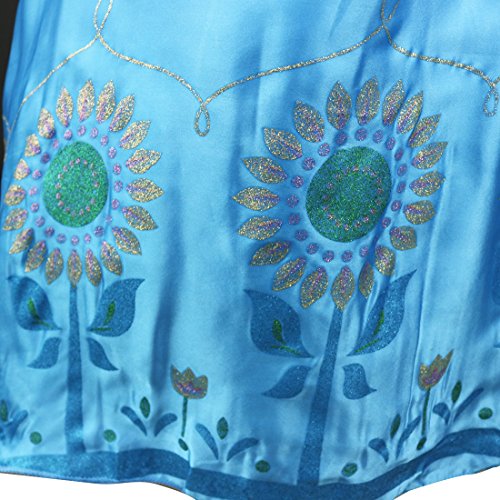 -. Feature : Set Include: 1pc Princess Dress / Girls amazing frozen princess dress, short sleeves and hidden back zipper closure / Top bodice with embroidered flower and attached shawl, faux sparkling diamond detailings / 2 layers skirt, top layer with glittering floral pattern and 1 lining / Perfect for parties, cosplay, christmas or daily wear