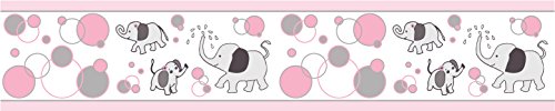 GEENNY Wall Border, Pink/Gray Elephant