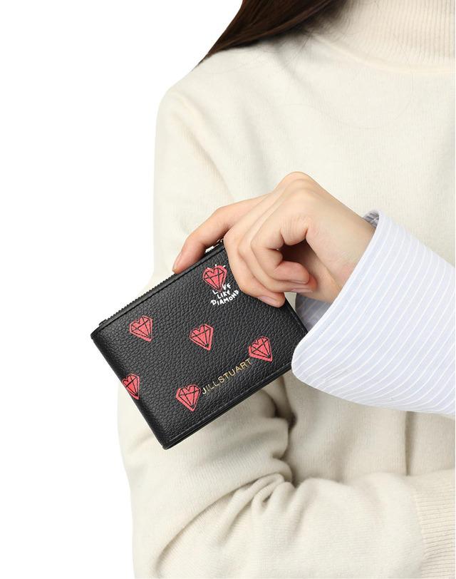 블랙 컬러의 질 스튜어트 하트 다이아몬드 패턴으로 귀여운 반지갑입니다.