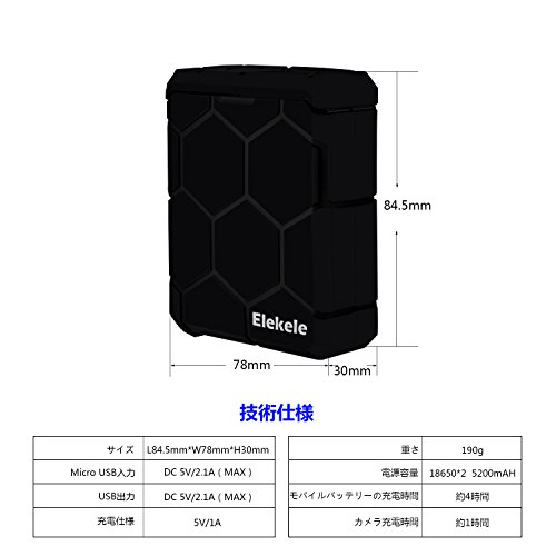 -. Title : アクションカメラ 4K バッテリーチャージャー,Elekele® 5200mAh スポーツカメラ 急速充電器 USBポートバッテリー 専用互換 防水 災害 緊急アウトドア 携帯電話 iphone ipad スマホー カメラ 充電器