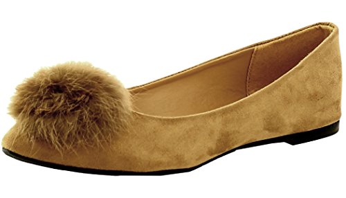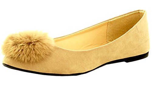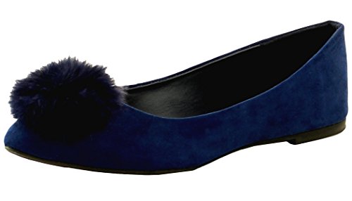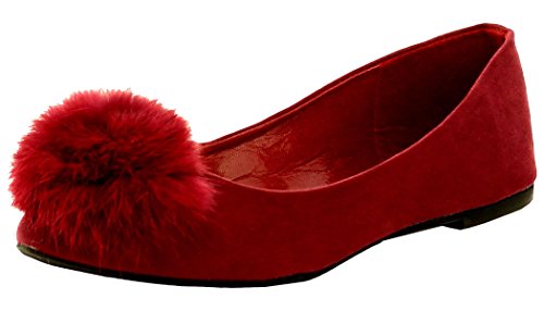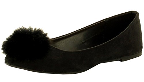 Product DescriptionRefresh Footwear Women's pom pom accent ballet flats feature sueded fabric throughout with flat .5" heel. Imported.0