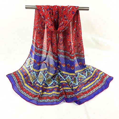 Feature: Its special design will make you look unique Elegant design, you can wear in many ways, you can put in your bag when you need at any time It is a good gift for your lover, family, friend and coworkers Material:Chiffon Size:150*50CM/59 X 20inches All dimensions are measured by hand, there may be 2-3 cm deviations. Note:Due to the difference between different monitors, the picture may not reflect the actual color of the item. We guarantee the style is the same as shown in the pictures. 0