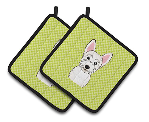 Caroline's Treasures Checkerboard Lime green Westie Pair of Pot Holders BB1288PTHD, 7.5HX7.5W, Multicolor
