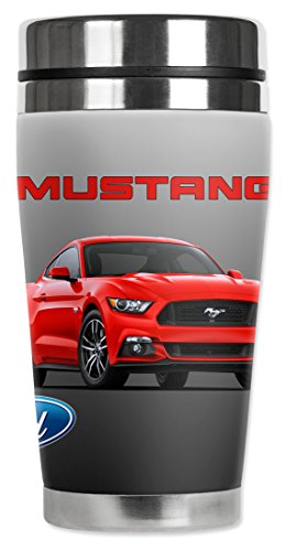Mugzie Ford Mustang Travel Mug with Insulated Wetsuit Cover, 16 oz, Red