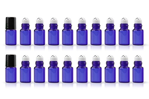- Set of 20 Glass Roll On Bottles: Blue Brown Red Green Purple bottles available options, stainless steel ball inserts and black caps, Package include: 20 Pack bottles 1 opener and 1*1ml dropper