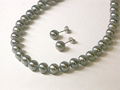 기다린다 화 주패펄 목걸이 피어스(귀걸이) 세트 45cm 흑진주 그레이 컬러9밀리45센티 피어스(귀걸이) 관혼상제 koagrpn-09-1-45-pias