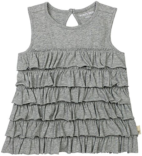 This tiered ruffle tank is girly and fun all day long. 100 percent organic cotton jersey fabric makes it super comfy to wear, and the coconut button in the center back is an extra cute touch.