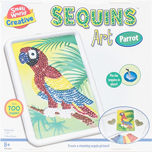 Small World Toys is delighted to present the new craft set "Sequins Art Parrot" kit from their innovative Creative Collection. Kids can create a tropical Parrot using fabric, sequins, pins, a Styrofoam base; plus picture frame. This set promotes the development of hand-eye coordination and fine motor-skills in an enjoyable, creative activity. Recommended for budding Artists ages 8 years and up. Small World Toys is focused on developing and delivering the safest, highest quality products for your kids. Safety and well-being is our number one priority. Small World Toys' own rigorous safety and testing protocol provides protection of the highest order. We test all our products through independent and accredited testing labs to the applicable U.S. mandatory federal safety standards. Small World Toys believes play is an integral and necessary part of a child's development and education. This philosophy is at the core of our product development and drives us to continue creating and sourcing new and innovative products. In addition, a child's experience with our products should be a positive one. We pride ourselves in developing innovative designs that encourage creativity and builds self-confidence through mindful, hands-on engagement. Small World Toys: Making Dreams Come True since 1962.Feature