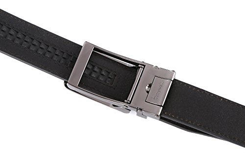 Tonywell leather belts for men features an easy removable buckle that allows you to cut the belt to your ideal size to give a primmer appearance. Fits waist sizes from 30 to 45 inches.