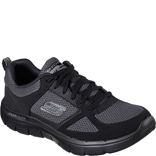 Binding : Apparel Product Description SKECHERS Men's Flex Advantage 2_0 cross-trainer shoes feature a smooth soft trubuck leather upper. Mesh fabric panels for cooling effect. Lace-up front for a secure fit. Padded collar and tongue. Soft fabric shoe lining. Air Cooled Memory Foam full length cushioned comfort insole. FlexSole shock absorbing lightweight flexible outsole. Highly flexible rubber traction outsole. 3/4 inch built in heel. 0