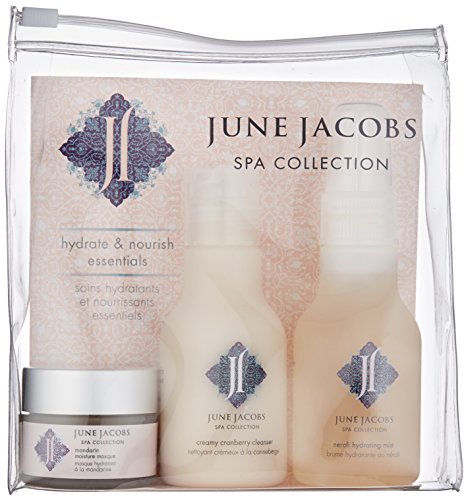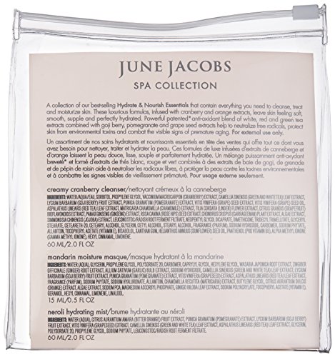 Studio : June Jacobs Laboratories LLC Dist. Publisher : June Jacobs Laboratories LLC Dist. Binding : Health and Beauty Product Description A collection of our best-selling hydrate nourish essentials that contain everything you need to cleanse, treat and moisturize skin. Paraben and preservative free, these luxurious formulas infused with cranberry and orange extracts leave skin feeling soft, smooth, supple and perfectly hydrated. Powerful patented anti-oxidant blend of white, red and green tea extracts combined with goji berry, pomegranate and grape seed extracts help to neutralize free radicals, protect skin from environmental toxins and combat the visible signs of premature aging. 0
