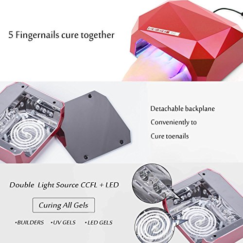 36w Led Uv Lamp Nail Gel Dryer - Perfect Summer Pro Light Lamp for Gel Nail Polish,Base Coat and Top Coat Nail Lacquers, French Manicure/Pendicure (Fashion Red)