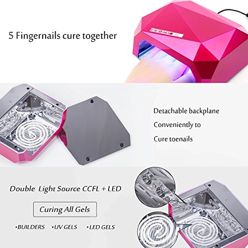 36w Led Uv Lamp Nail Gel Dryer - Perfect Summer Pro Light Lamp for Gel Nail Polish,Base Coat and Top Coat Nail Lacquers, French Manicure/Pendicure (Shiny Rose Red)