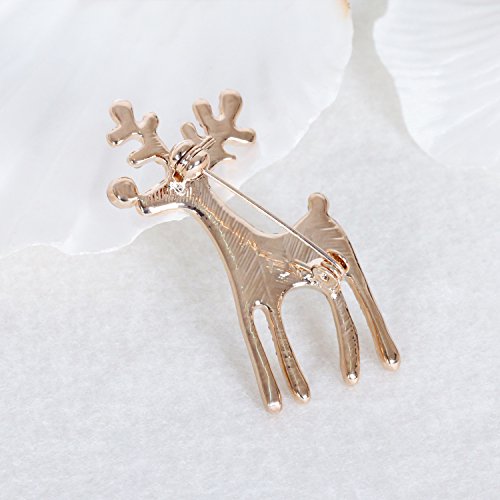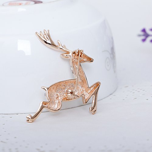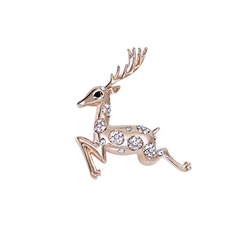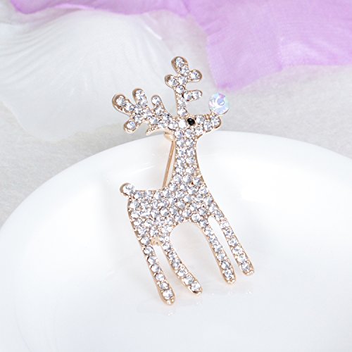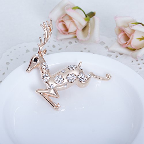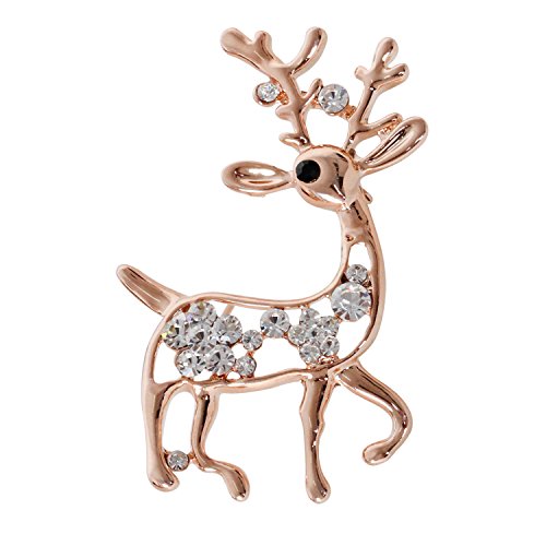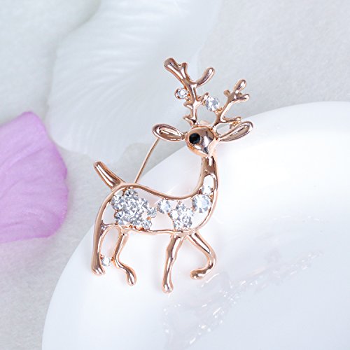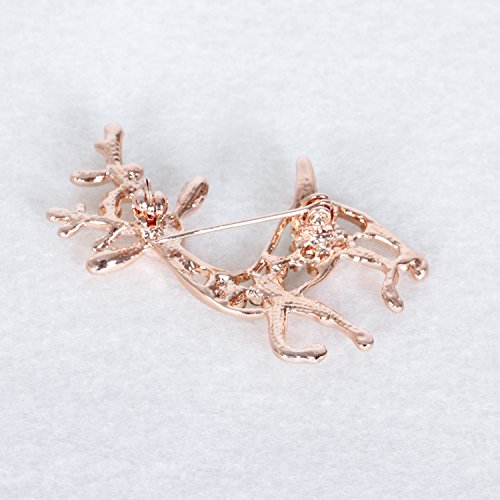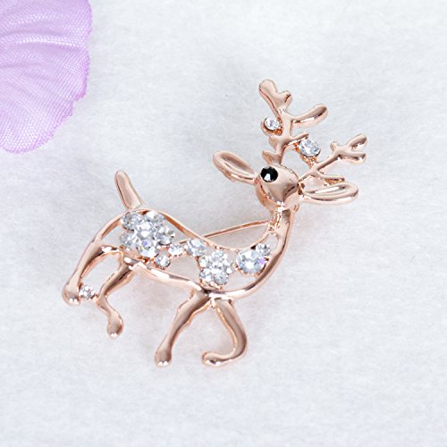 Cute Aniaml Brooch Rose Gold Plate Clear Crystal Elk Deer Pins Holiday Gifts Christmas Present