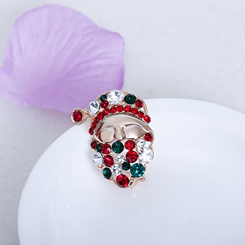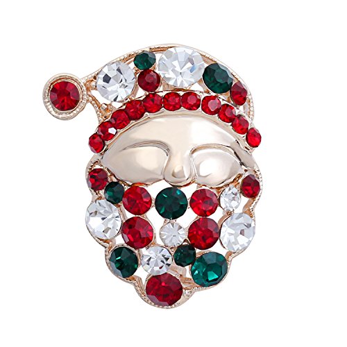 Santa Claus Brooch Colorful Crystal Gold Plate Christmas Gifts Holiday Present Pins Party Jewelry