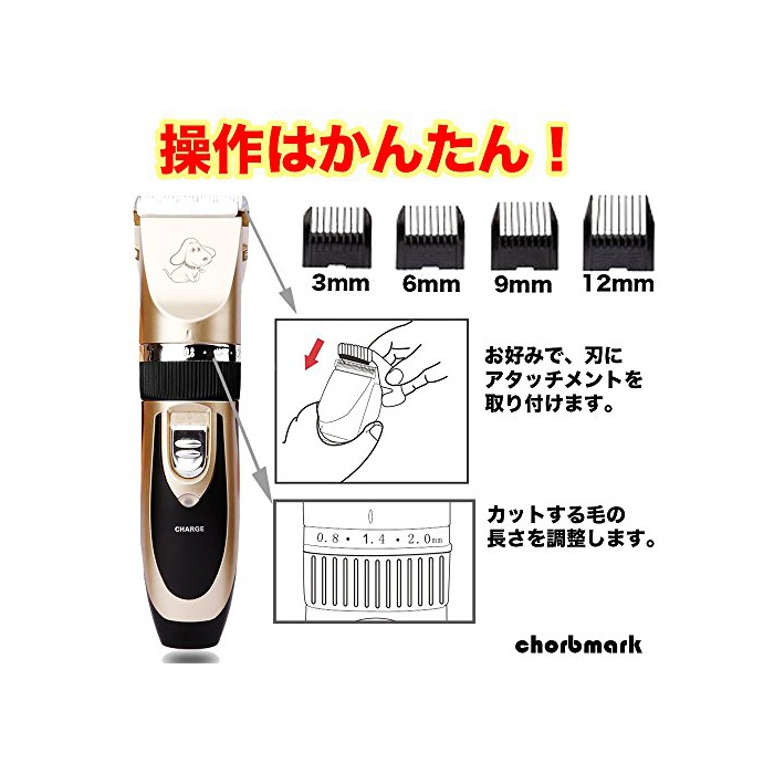 원본상품명:【chorbmark】ペット用 バリカン プロ仕? (犬 猫 トリマ?タイプ)充電式 コ?ドレス 1年保?&日本語?明書付