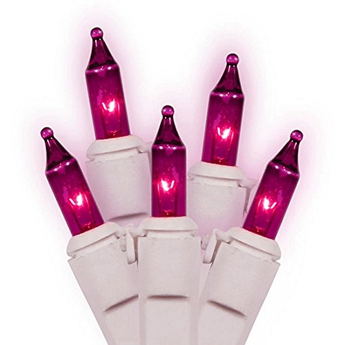 Vickerman Pinkish Purple Mini Christmas Lights with White Wire, Set of 100