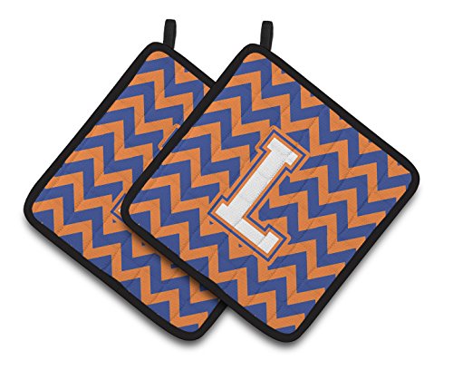 Caroline's Treasures Letter L Chevron Blue & Orange #3 Pair of Pot Holders CJ1060-LPTHD, 7.5HX7.5W, Multicolor