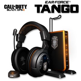 The future is now with the Turtle Beach Call of Duty�: Black Ops II Ear Force Tango Limited Edition Headset. Fully programmable audio presets, Dolby� Digital 5.1 Surround Sound, 2.4/5GHz Dual-Band Wi-Fi, a rechargeable Lithium Polymer battery, Bluetooth� technology and wireless chat for Xbox 360� and PS3� complete the ultimate gaming audio package.Dolby� Digital 5.1 Surround Sound lets you pinpoint the direction of every gunshot and footstep with 360 degree audio for an immersive experience, while adjusting the position of the virtual speaker angles provides enhanced customizability. Take control of the battleground by configuring up to 9 different presets for game and chat/mic audio paths so you can amplify bone-shaking explosions and hear every shell casing hit the floor � all while calling the shots and coordinating with your squad mates for maximum operational effectiveness. Featuring Call of Duty�: Black Ops II customized audio presets and voice prompts, as well as exclusive color scheme and speaker plates, the Ear Force Tango is designed to let you hear everything and defeat everyone.Feature